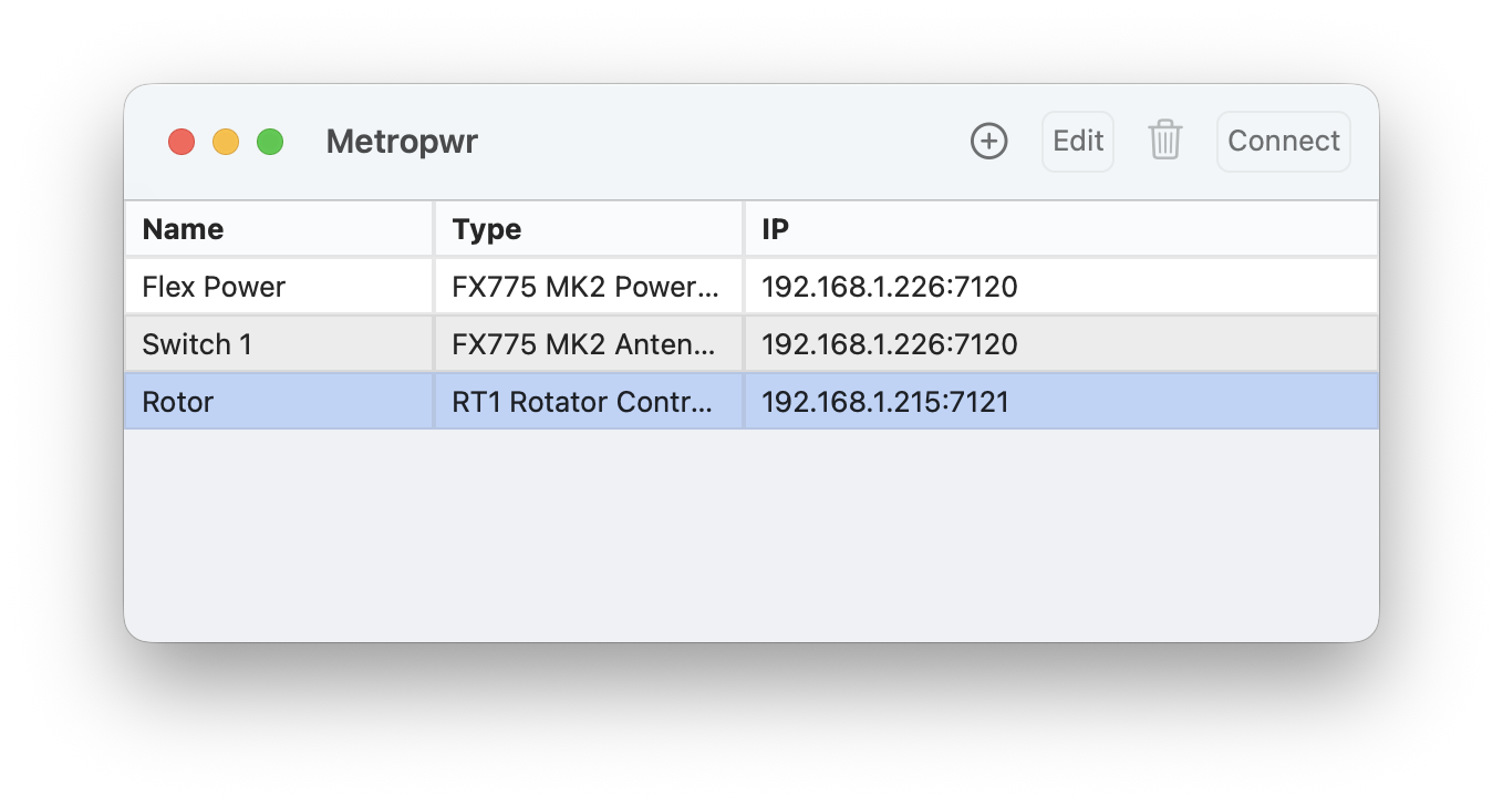 Click on Connect or the center of the screen to open the Radio chooser, which will initially be empty. Click on Add to enter details about your Kenwood Radio: